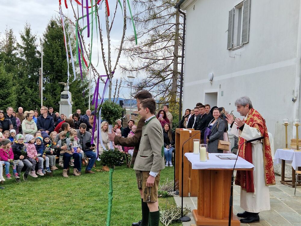 Dieses freudige Geschehen feierten wir am 2. April in großer Gemeinschaft auf unserem Kirchplatz. Diakon Michi Zepf zelebrierte und viele wirkten an der Gestaltung mit: die Musikgruppe, der Kirchenchor, Minis und JS (Passion), die Kindergartenkinder (Lieder), MS-Schülerinnen (Fürbitten) und die LJ (Palmbuschen). Danke allen fürs Kommen, Mitfeiern und Mithelfen!