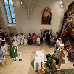 Liebevoll gestaltet war auch heuer wieder die Kinderkrippenfeier, die Pastoralreferentin Anja Asel mit vielen Kindern und Erwachsenen am Nachmittag des Heiligen Abends in unserer Pfarrkirche feierte. Schon vor der Feier erklangen Weihnachtslieder und stimmten alle auf das weihnachtliche Geschehen ein. Ein herzliches Danke an Anja und die mitwirkenden Minis sowie an unsere tolle Band für die stimmungsvolle Musik, die alle sehr begeisterte!